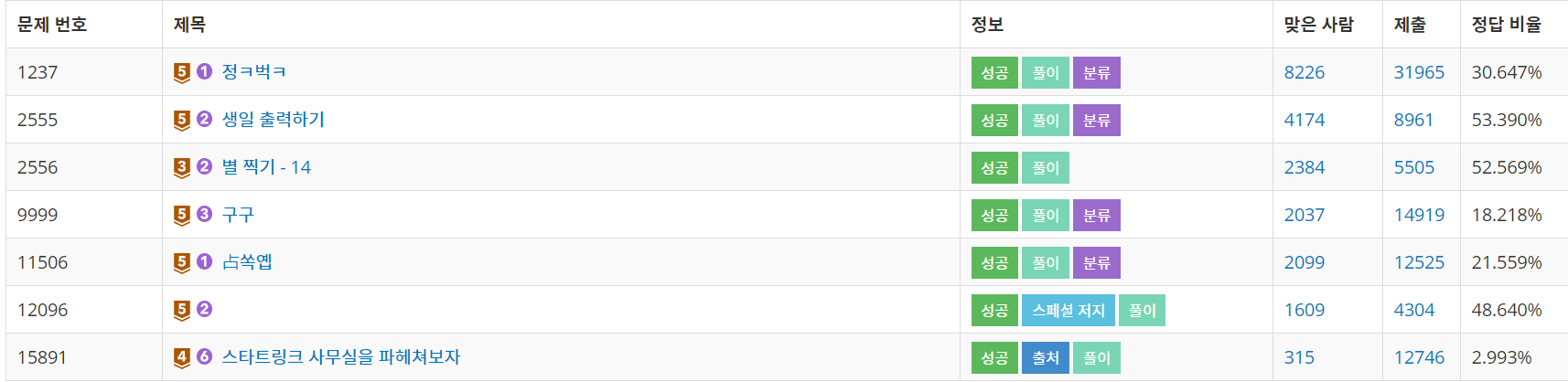 요렇게 백준 7대 난제를 모두 풀어보았습니다. 다들 화이팅^^
