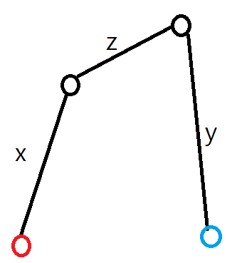 푸른점에 포함될 길이 = 전체길이/2 - y 이지만, 2배를 한다고 했으므로 z+x-y