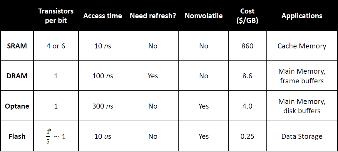 Nonvolatile Memories : 펌웨어 저장용이나 SSD 등에 지원됨