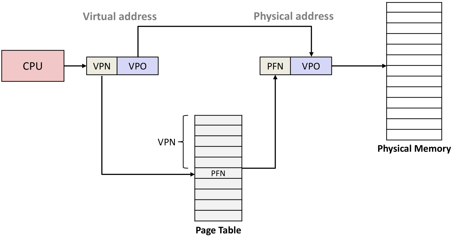 OS에서 VPN에 맞는 PFN의 PTE(page table entry)를 참조하여 physical address 확인
