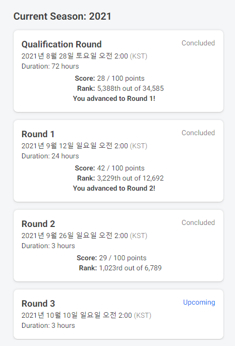 Round 2를 가장 열심히 했는데, B번에서 스택 오버플로우가 자꾸 나서 시간을 상당히 많이 버린점이 아쉽다.