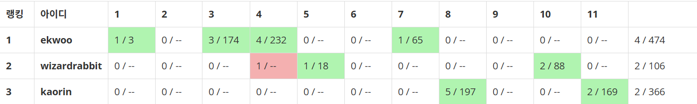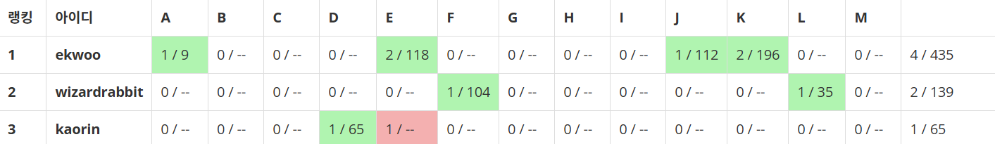 대회 온타임에 4솔+를 하면 본 실력이 나온거고, 골골플플플(+플)정도를 풀면 대회 셋 대비 정말 잘 푼거라고 혼자 생각했습니다.