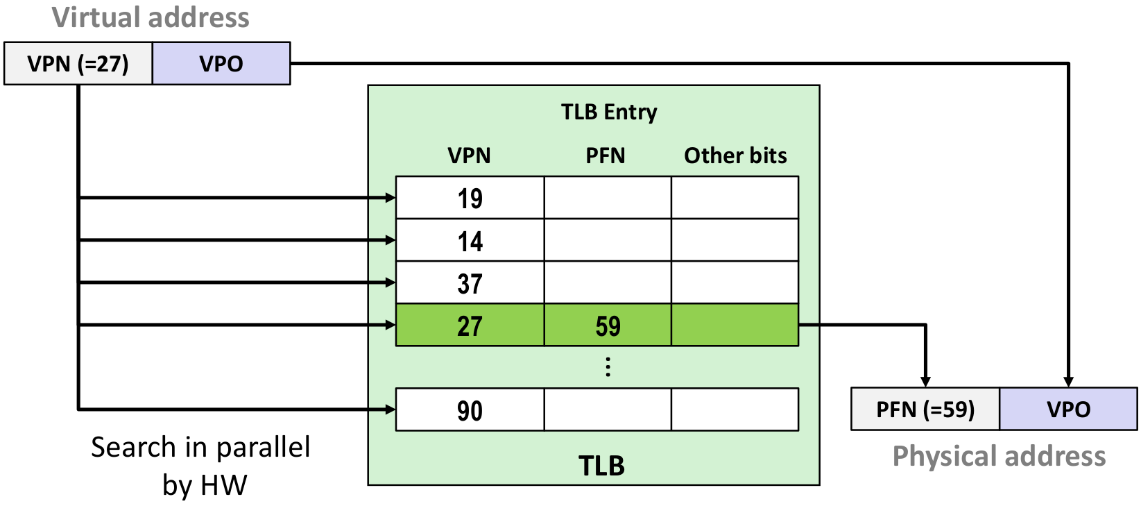 H/W는 parallel하게 TLB 전체를 뒤진다.