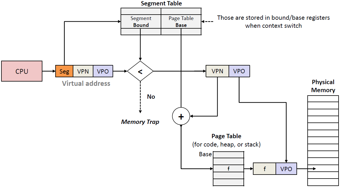 - base register : 각 segment에 대해 page table의 physical address를 가리킴