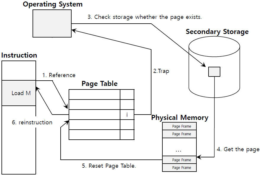 - victim page 자리에 disk에서 new page를 불러와 대체한다