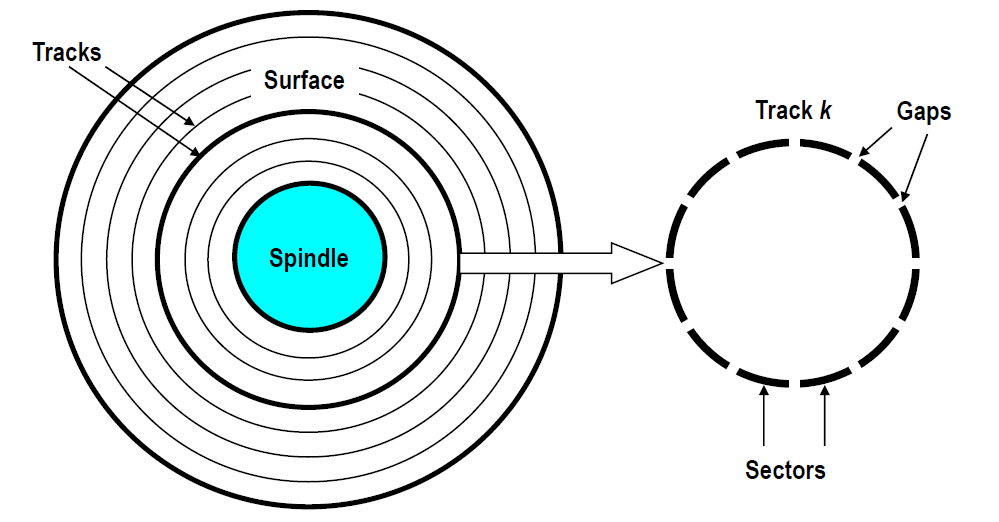 각 track : gaps로 나눠진 sectors