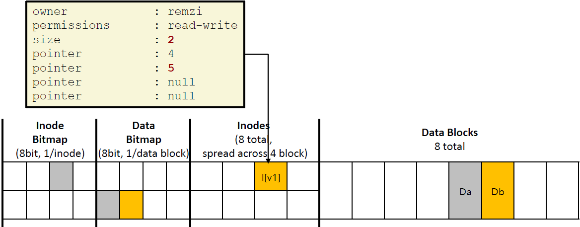 - inode가 disk address (5,Db)를 가리킴 > Db가 안쓰였기에 엉뚱한(garbage) data를 가리킴