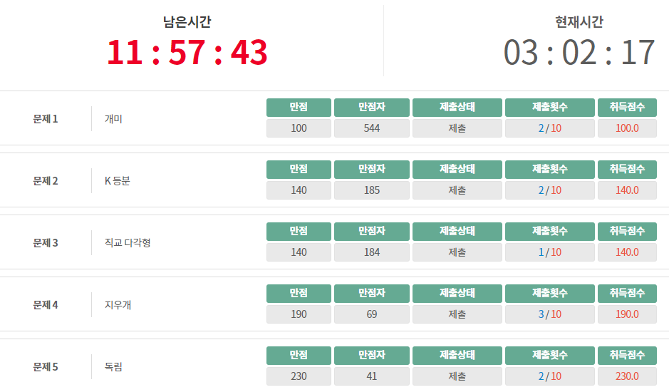 (제출횟수랑 남은 시간이 더 많이 남은건 아이러니하네요)